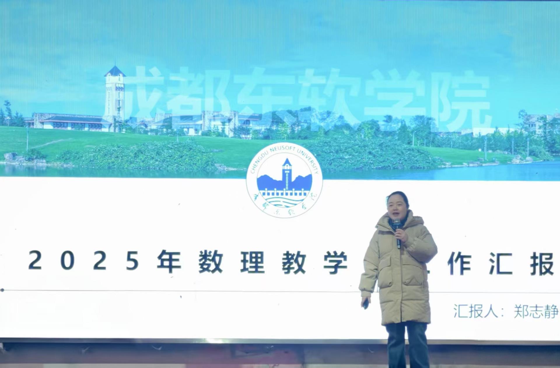 数理教学部副部长郑志静汇报了部门年度工作。 她介绍部门专任教师全年承担的教学任务。通过深化课程改革,推进“四图谱一工作台”智慧教学,建设了《离散数学》等线上课程。学科竞赛取得历史性突破,获全国大学生数学建模竞赛国家级奖2项。部门现拥有省级一流课程等4门,教研科研成果稳步提升。